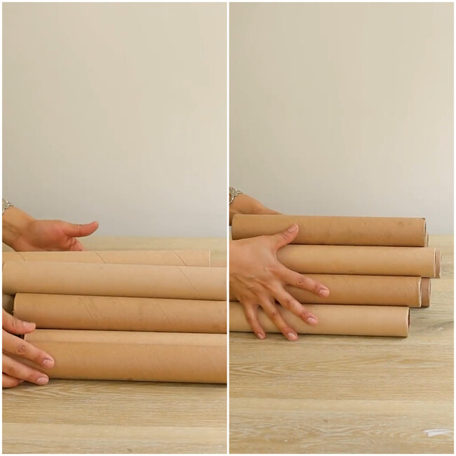 El primer paso consiste en elegir una base rígida que actúe como eje central de la mesa. Un tubo de PVC es una opción práctica y accesible, aunque también pueden emplearse otros elementos firmes que garanticen estabilidad. A partir de ahí, comienza el proceso más creativo: forrar esa estructura con los rollos de cartón, colocándolos alrededor hasta conseguir el volumen deseado.
