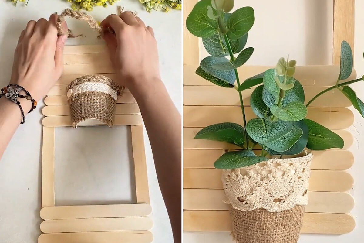 Qué hace falta para preparar un macetero colgante con palos de helado