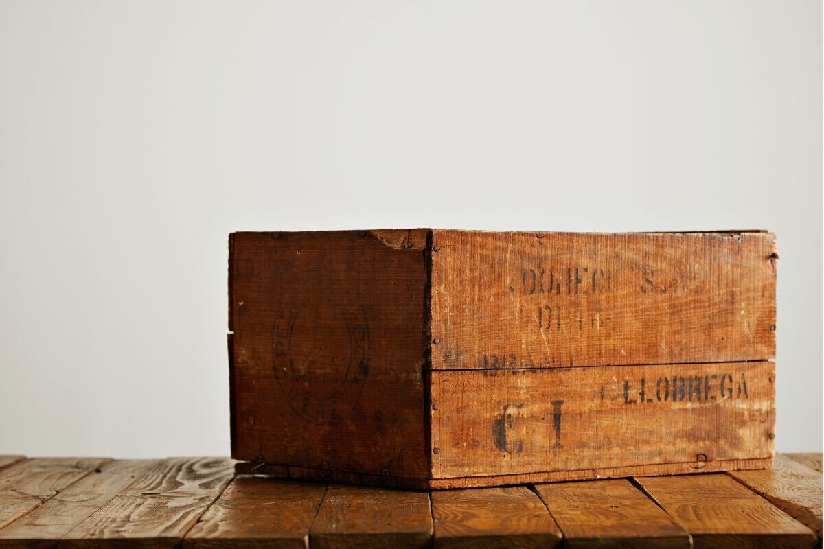 Caja de madera como portabultos.