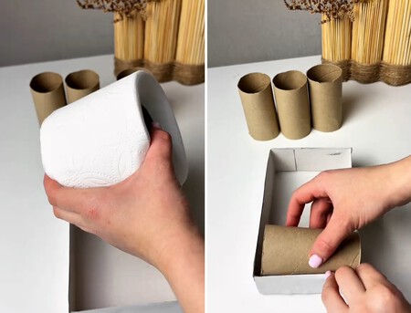 Hoy, hemos puesto nuestro foco handmade en esta fantástica idea para reutilizar los rollos del papel higiénico y una caja de cartón en un práctico organizador de anillos. La idea, la hemos visto en la cuenta de TikTok de @fastdly. Y aquí te mostramos el proceso paso a paso.