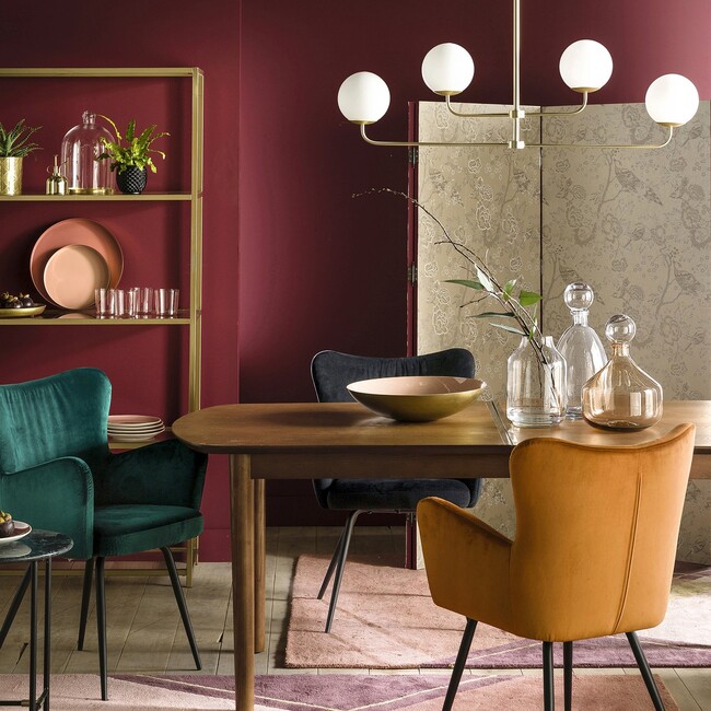 Una lámpara de un estilo similar a la anterior, aunque esta mucho más espectacular. La lámpara de techo ROSEWELL de Maisons du Monde cuenta con múltiples bolas de vidrio ambarino y metal dorado. Precio: 349,90 €.