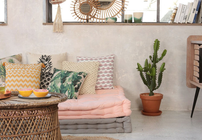 Entre los rincones de lectura que hemos elegido en esta nueva entrega de la semana decorativa, destaca el de la imagen sobre estas líneas que hemos visto en el blog de Novenoce en un artículo sobre la línea de hogar de Pimkie Home, otra firma de moda que se suma a la tendencia de vestir también nuestros hogares.