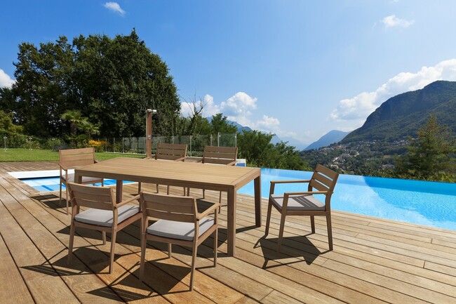 Otra de las cosas que podemos hacer es sustituir las habituales sombrillas por una pérgola bioclimática. Un tipo de pérgola que incorpora unas lamas regulables en el techo para poder controlar la circulación del aire y, por lo tanto, la temperatura bajo la pérgola. Además, si la instalas pegada a la fachada, también te permitirá también ahorrar energía en el interior de la vivienda.