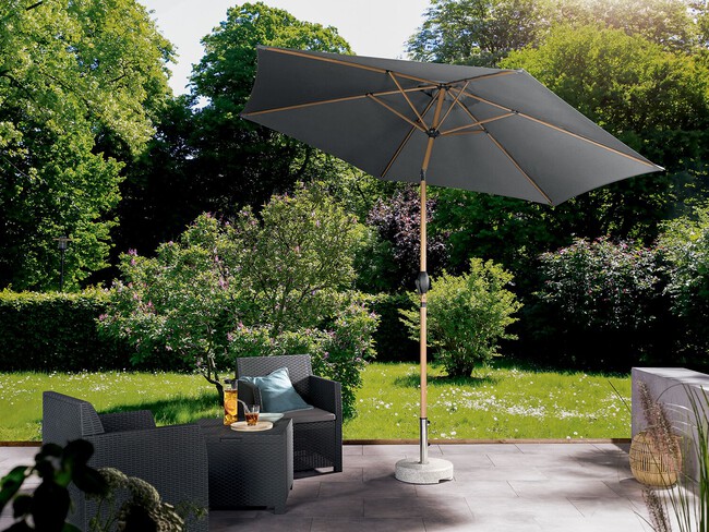 A la hora de dar sombra a nuestro balcón, jardín o terraza tenemos tres opciones principales: toldos, pérgolas o sombrillas. Cada una tiene sus pros y sus contras pero hoy vamos a centrarnos exclusivamente en estas últimas, las sombrillas, porque hemos fichado en Lidl una de lo más bonita y económica. Se trata de una sombrilla fabricada en alumino y acero resistente pero con un acabado estilo madera que nos parece lo más, muy rollo chill out, y cuesta 49,99 euros.