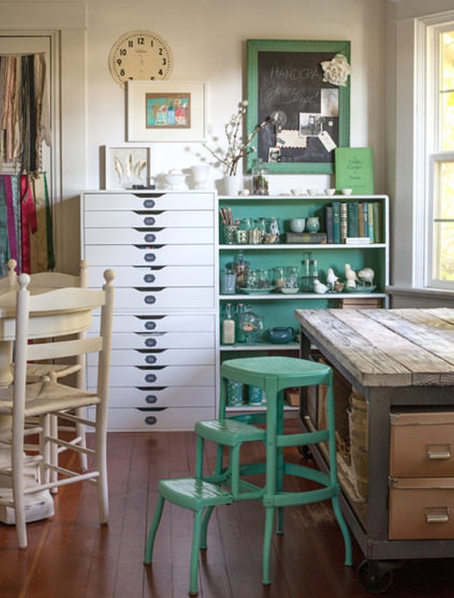 Pero no hay que desesperarse, hay soluciones para todos los tamaños, como podemos ver en las imágenes, un poco de creatividad (la misma que tenemos al llevar a cabo nuestros DIY) y encontraremos ese rincón inesperado donde poner nuestro taller.