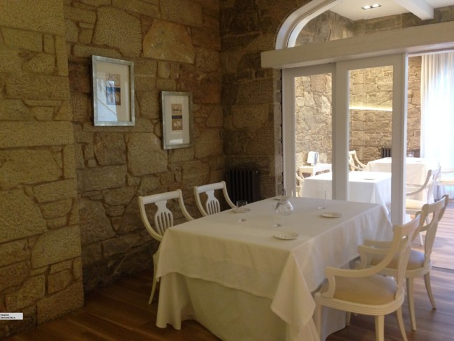Aquí empiezan en Retiro da Costiña los lujos dignos de Estrella Michelín. Han pensado en esa necesidad de un espacio adecuado para la primera toma de contacto y lo han creado a modo de vinoteca y ambientado en estilo industrial. Madera, metal y elementos reciclados se dan la mano en esta zona de entrada de la que no hice muchas fotos porque estaba más concentrada en disfrutar de la experiencia, pero además de poder verlo en persona si venís a Galicia tenéis un montón de imágenes en su web.