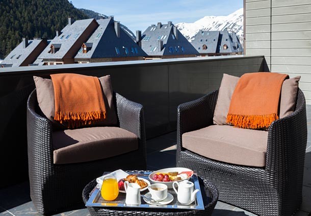 Si vuestra idea de un hotel en la montaña es de mucha madera y estilo cabaña, este os va a sorprender, porque la decoración es muy urbanita. Destila diseño y calidez de materiales de alta calidad.