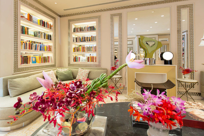 Blancos, beigs y arenas son los elegidos para estos interiores, así como flores coloridas que levantan el color del interior. Es la conjugación de una decoración refinada con una práctica seductora y comercial. Un nuevo espacio para que las mujeres se reflejen y se inspiren. Una biblioteca de historias personales con nuevos conceptos para fomentar la interacción entre la decoración y el ocio consiguiendo la libertad de conocimiento.