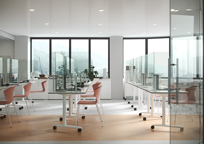 Lo de señalizar las sillas con colores tiene dos objetivos, por un lado se utilizan en turnos distintos, pero por otro así se evita tener que guardarlas... Y es que otro problema con el que se encuentran muchos centros es que están retirando mobiliario no imprescindible para ganar espacio y no hay almacenes suficientes para guardarlo todo. Ojalá en los centros educativos hubiese mobiliario tan bonito y versátil como el de Actiu que ilustra este artículo, pero la realidad es que las mismas mesas y sillas por las que ya hemos pasado varias generaciones siguen siendo las que están presentes en la mayoría de las aulas.