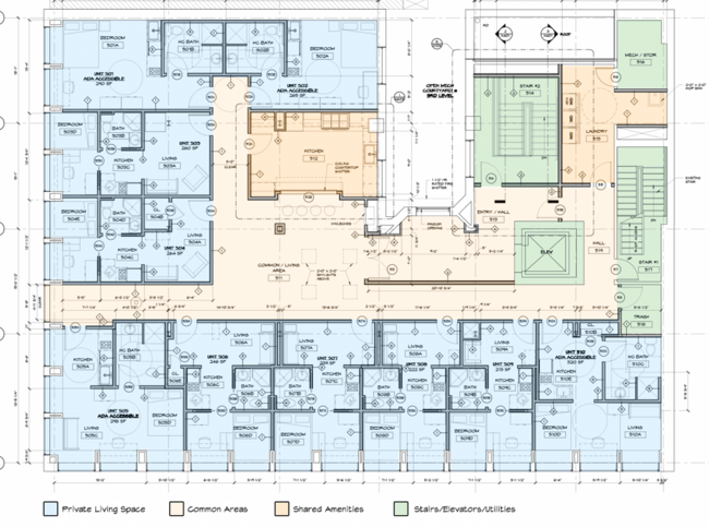 Yendo un paso más allá han construido dentro de un edificio los dormitorios commonspace, los que significa dormitorios de uso común. Dentro del edificio se hacen reparticiones de 21 microunidades de habitaciones que se completan en su interior con cocina, baño, dormitorio y un espacio habitable de aproximadamente unos 28 metros cuadrados. Estas microunidades como ellos la denominan rodean las áreas comunes compartidas y compuestas por una cocina bastante más amplia y equipada, en comparación con la particular de cada habitación, una sala de juegos y una de televisión.
