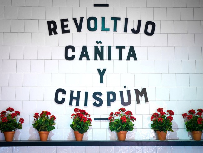 La Chispería de Chamberí es un espacio gastronómico en el que conviven un ‘revoltijo’ de seis propuestas, castizas e internacionales (desde Cádiz hasta Perú, pasando por México), con las que el Mercado busca revitalizarse sin perder su encanto tradicional, de toda la vida. Con un interiorismo moderno y funcional y sin embargo con materiales tradicionales en los mercados como los baldosines blancos o mesas de hierro y chapa metálica.
