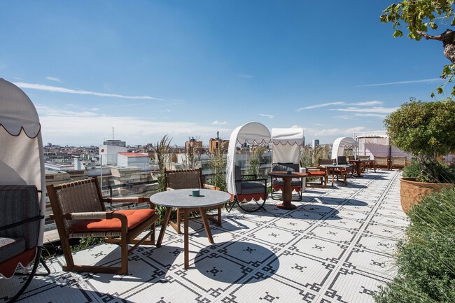 La terraza es una propuesta totalmente diferente en la Milla de Oro madrileña, y desde Decoesfera ya te avanzamos que se va a convertir en el nuevo place to be de la capital por su diseño, sus propuestas gastro, y por las vistas de los tejados (y de la Sierra) de Madrid que pueden disfrutarse desde allí.
