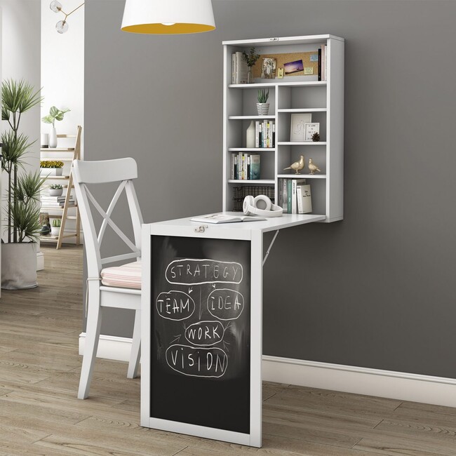 Una mesa plegable de pared ideal para espacios pequeños. Tiene pizarra y tablón de corcho, espacio para almacenaje. Tamaño abierta: 50 x 92,5 x 153,5 cm. Tamaño cerrada: 50 x 18,5 x 80 cm. Tiene un 1$% de descuento, antes costaba 69,99 euros, y ahora cuesta 59,99 euros.
