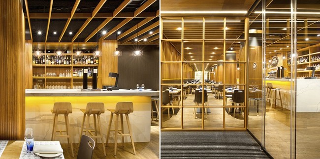 Su refinada decoración interior se divide en dos espacios diferentes ubicados en la misma calle y para dos tipos de públicos concretos.