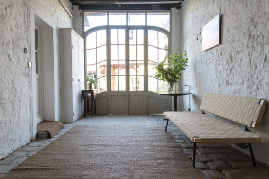Si continuamos paseando por el edificio, la zona de estar se amuebla con una mesa de madera natural diseñada por Gesa, ésta ofrece gran capacidad para reuniones familiares y de amigos al ser abatible, en ella la vajilla atemporal Old Luxembourg tiene su lugar. Si en algo hace hincapié la gran artista es en la decisión que debemos tomar sobre la tendencia de vida lenta en la que se disfruta en cualquier ocasión de los bienes más preciados. Es justamente como en esta casa se vive, se toman las cosas con tiempo, se disfruta de un entorno rural y de una decoración en la que fluye el pasado con el presente, un lugar donde uno se encuentra a sí mismo y nada se deja reservado para días mejores, todo se utiliza a diario.