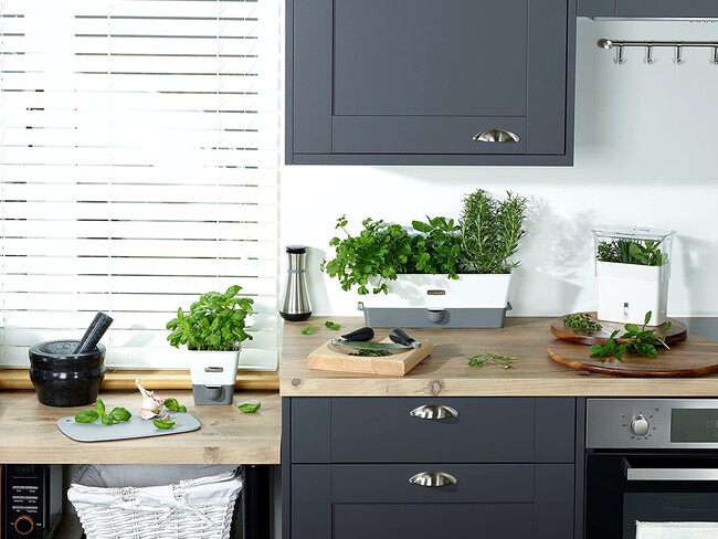 Cole & Mason H105349 Burwell Conservador Para Hierbas Aromaticas en Macetas, Blanco/Gris, Cultivo de Plantas Hierbas de Interior, Acero Inoxidable, Triple, Para 3 macetas, 2 Años de Garantía
