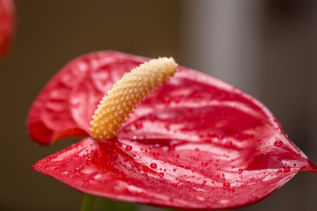 Los anturios, o Anthurium andraeanum, son una planta perenne de interior que es ideal para dar un toque exótico a cualquier estancia. Sus hojas con forma de corazón son de color rojo o blanco, dependiendo de la variedad.