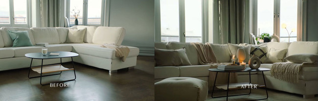 Un cálido antes y después que da solución a problemas habituales que plantean en el video como lo de tener un sofá aburrido o disponer de una bonita composición que sea fácil de colocar.