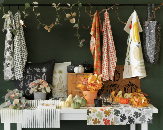 Los textiles cuentan con patrones de estilo escandinavo moderno han sido trazados por Hanna Wilcox, una diseñadora textil especializada en impresión por la UAL Central Saint Martin’s que se ha inspirado en los cálidos colores otoñales y en los vegetales que se cosechan en esta temporada.
