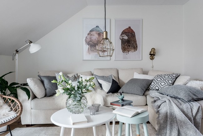 En La Garbatella tenemos un mini piso en estilo escandinavo, si nos fijamos en los detalles vemos que algunos se han convertido en un must en todo este tipo de viviendas, por ejemplo las dos mesas auxiliares redondas que sustituyen a la clásica mesa de centro.