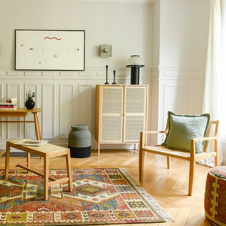 Un complemento que puede sumar funcionalidad, y también estilo, en la entrada de la casa y en otras estancias es un banco que combine madera con algún tipo de fibra. Una pieza de tendencia desde hace algún tiempo que podemos encontrar en múltiples tiendas de decoración. El de la foto de portada es un banco de roble y rejilla de ratán, en madera clara, de Maisons du Monde que actualmente vale 188,55 euros. Antes costaba 280,91 euros, pero ahora en rebajas tiene un descuento del 30%. Si queremos algo parecido pero gastando mucho menos dinero, Primark tiene un modelo en un estilo similar pero mucho más barato.
