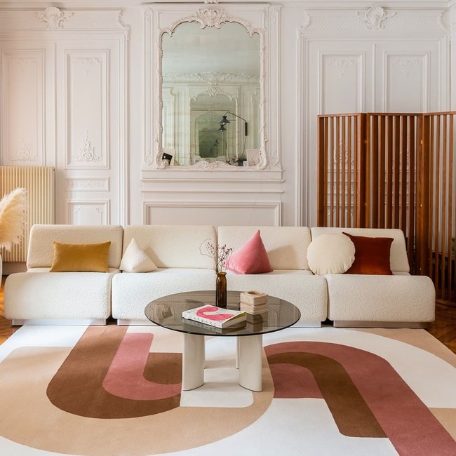 Cortinas y alfombras con estampados geométricos y orgánicos