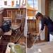 Para empezar, Marina lijó y pintó el pequeño conjunto de exterior de Ikea de una mesa y un par de sillas, aplicando un par de capas de pintura en color madera nogal resistente a la intemperie.