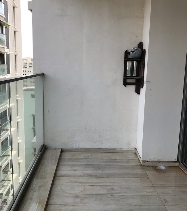 Pero por forma y tamaño esta terraza tenía potencial, así que con sencillos cambios se convirtió en un mini jardín artificial cambiando radicalmente su atmósfera. El primer paso fue cubrir el suelo gris con césped artificial, algo que aporta frescura, color y una textura más agradable para caminar descalzo o sentarse. Este simple gesto suaviza la estética rompe con la sobriedad original, simulando cierta conexión con la naturaleza.