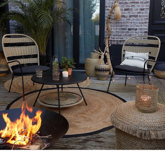 Para dar confort estético y crear ambiente, y por supuesto, para dar calor, los braseros (funcionan con leña) y las estufas de exterior (funcionan con gas) no pueden faltar en tu terraza o jardín. Este brasero cuesta 249 euros en Made.