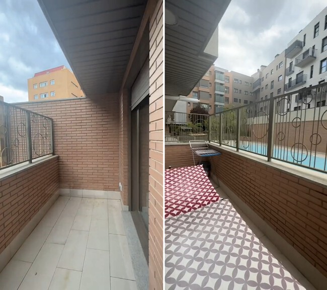 Lo primero ha instalado unos paneles de ocultación. En este caso, la tiktoker ha optado por instalar una lámina vegetal de jardín vertical que sombrea y refresca el balcón a la vez que privatiza la zona y evita posibles miradas indiscretas. Para hacer el espacio más confortable, ha instalado también un toldo con el fin de dar sombra.