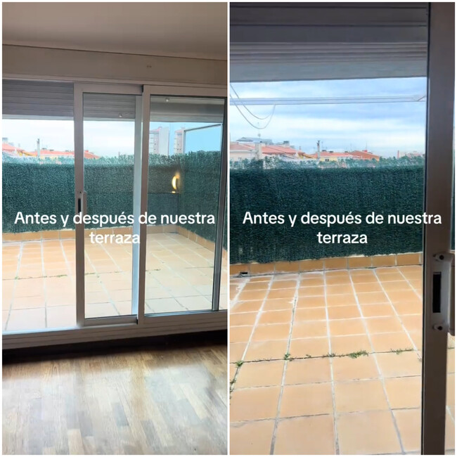 En su nuevo hogar había una amplia terraza de exterior que se ve desde el salón por la ventana acristalada. Aprovechando esta distribución, la joven ha creado todo un oasis al aire libre que parece una perfecta continuación de su casa interior. ¿Quieres verlo?