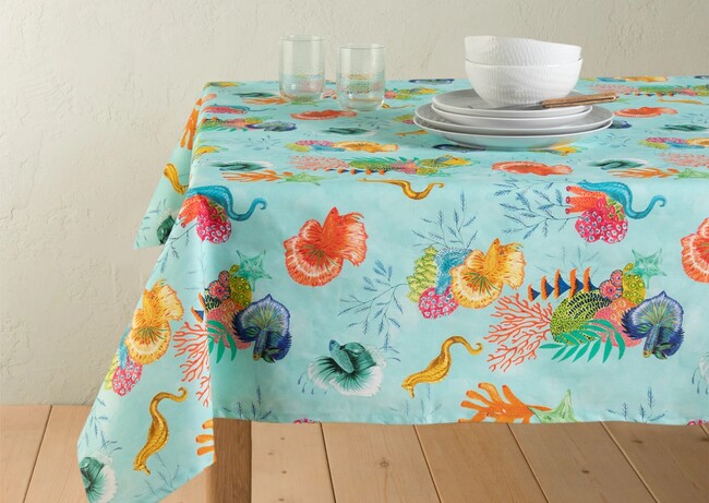 Si te gusta poner mesas marineras, pero quieres algo más de color, aquí tienes este mantel resinado con estampado de coral de El Corte Inglés. Tiene un descuento del 20% de descuento, antes costaba 29,95 euros, y ahora cuesta 23,95 euros.