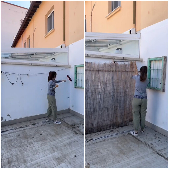 La historia comienza con un rincón exterior que, como ocurre en muchas viviendas, había caído en el olvido. Lo que una vez prometía ser un lugar de relax terminó convertido en un pequeño caos: trastos, macetas vacías, suelo irregular y paredes sin alma. Pero este verano, algo cambió.