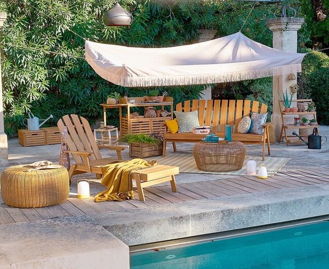 Este toldo rectangular tiene un borde de flecos. Es fácil de instalar y de guardar, y tiene un descuento del 25%. Precio anterior 79,99 euros, precio actual 59.99 euros.