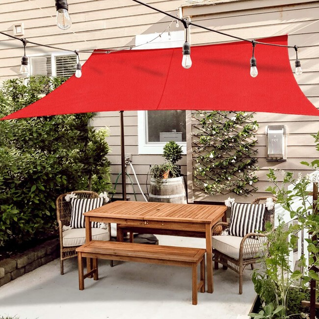 Toldo vela de sombra rectangular de 2 x 4m en color rojo, que protege en un 95% de los efectos de los rayos ultravioleta. Precio: 15,98 euros.