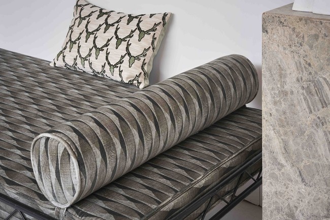 El raso de algodón estampado Quartz, se inspira en el cuarzo, en gris o en rosa (este último nos ha encantado). Y por último, se reedita con un color más realista y en calidad Outdoor Esparto, uno de los modelos más vendidos de la anterior colaboración de Serge con Gancedo.