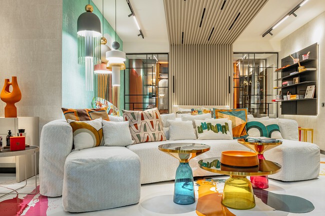 En el colorido espacio también se puede disfrutar de otra de las tendencias que se impondrán en decoración en los próximos años: el metaverso. Durante la feria, Shelum Bautista mostraba a través de unas gafas de realidad virtual la tienda que la firma de interiorismo tiene en Madrid, pero sin salir de su stand de Marbella.