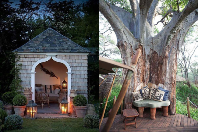 Para los más convencionales, los espacios de lectura en exterior pueden ser muy cómodos y acogedores sin tener que romper con algunos esquemas decorativos más tradicionales. Desde las típicas cabañas de madera hasta unos colchones muy cómodos junto a la piscina, podemos encontrar de todo, para todos los gustos y necesidades.