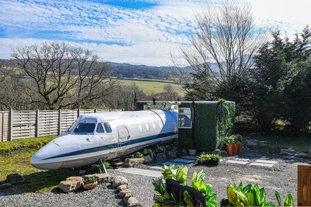 Pero también hay opciones que les molarán a los amantes de la aviación o a quien busca un alojamiento diferente, como este avión Hawker de los años 70 que ha sido reconvertido en alojamiento turístico en Gales, en el Reino Unido.