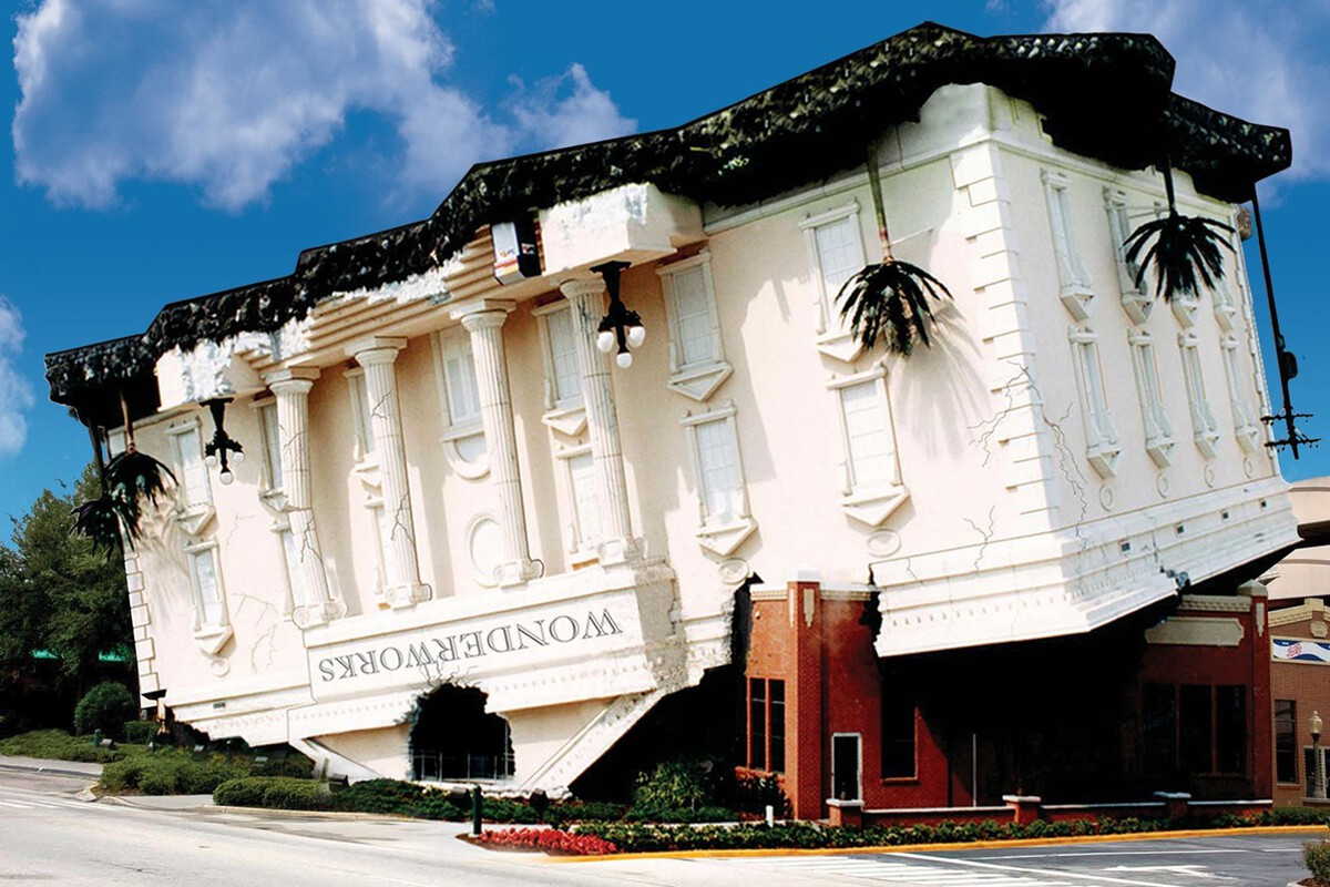 Wonderworks es una mansión construida del revés y que está situada en Orlando, en el estado norteamericano de Florida. En su interior, te esperan multitud de atracciones basadas en la ciencia y en la naturaleza tanto para grandes y chicos. Desde el exterior ya sorprende por su arquitectura imposible, como si un huracán la hubiera arrancado del suelo y la hubiera dejado caer boca abajo.