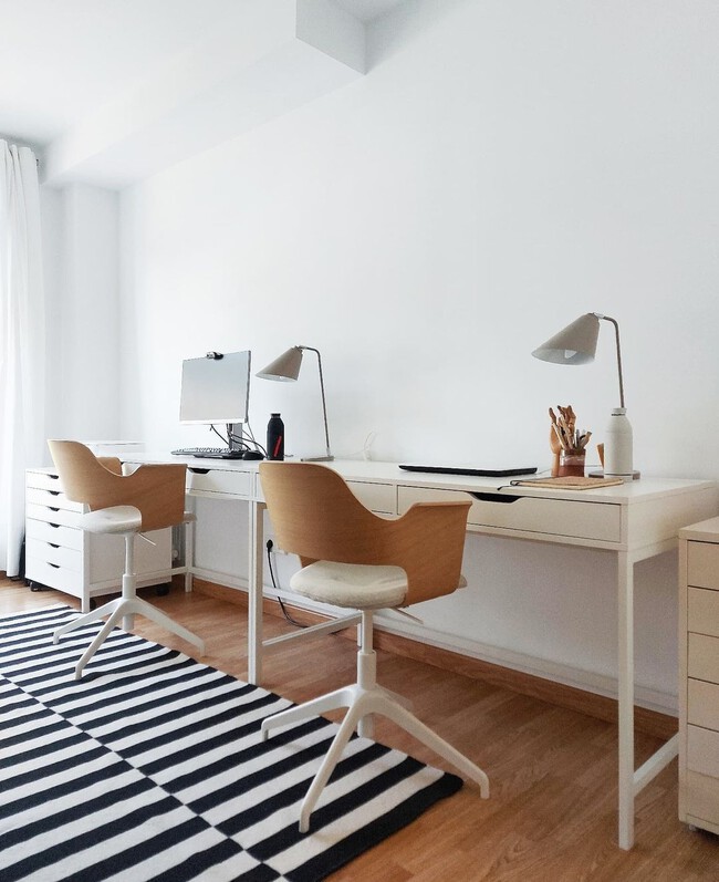 Si somos de los que tenemos el escritorio en el dormitorio este modelo en blanco (también disponible en beige y negro) puede ser una buena idea por su limpio diseño y cajones. Cuesta 189 euros y con el cupón se queda en 184 euros.