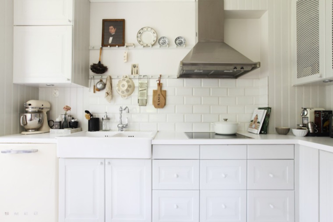 Empezamos nuestro recorrido en Tránsito Inicial. En este blog nos hablan de una cocina blanca en acabados clásicos, con los utensilios a la vista tal y como sucedía en las cocinas de antes. Un espacio idílico para una casa de campo, o situada a la orilla del mar en la que resguardarse del calor y organizar una deliciosa merienda.