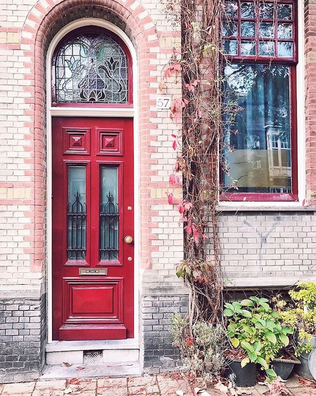 Empezamos con la puerta roja de la imagen que hemos visto en un artículo sobre casas tipo loft en La Bici Azul, hay un montón de imágenes para inspirarse en ese tipo de vivienda, pero nos hemos quedado con esta porque además de inspirar a todo color, también es muy navideña.