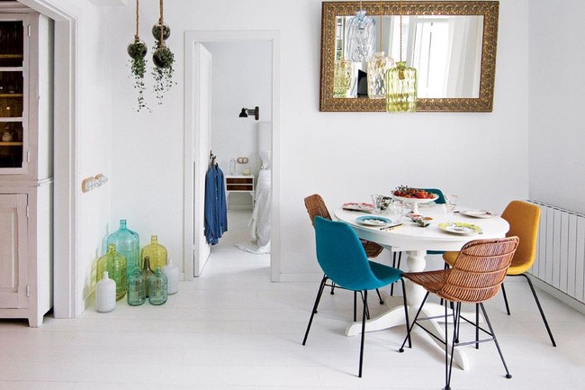 En Chic and Deco nos muestran una casa decorada con maderas recicladas y en ella nos volvemos a encontrar la misma tendencia decorativa de la que hablábamos antes, sillas de distintos estilos combinadas y creando contrastes de forma y color.
