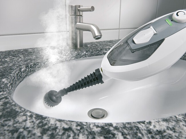 Puede utilizarse de dos formas: por un lado como mopa de vapor para limpiar el suelo y por otro como limpiavapor de mano para limpiar azulejos, el baño, etc. Tiene 1.500 W de potencia, un depósito de 350 ml (lo que equivale a 11 minutos de autonomía) y unas dimensiones de 280 x 215 x 1120 mm. 44,99 euros