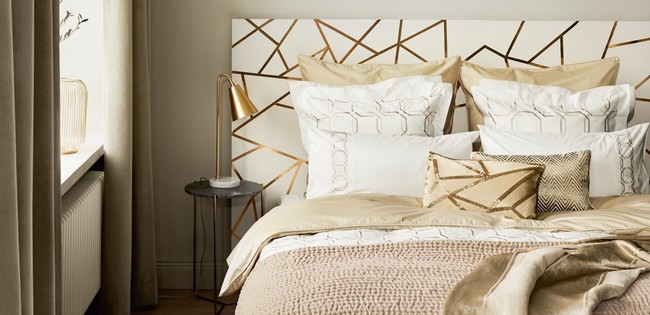 En la gama de textiles encontramos con facilidad colchas, cojines, cortinas con remates en dorados y hasta cabeceros de cama. Éste que os mostramos es de la colección MODERNIST primavera verano de Zara Home. También en iluminación es frecuente toparnos con lámparas en todo tipo de terminaciones, las realizadas en latón dorado avivan los ambientes como podéis comprobar.