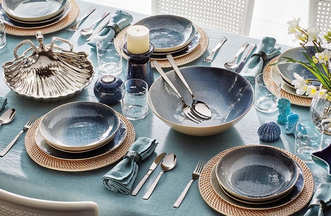 - Ya que estamos con el tema de la mesa, una vajilla siempre es un regalo bonito. Y más. si llega en este encantador tonos azul. La vajilla Lola de El ha sido fabricada en cerámica de gres pintada, y cuenta con un elegante efecto degradado que está decorado con un original esmalte reactivo que le da a cada pieza un acabado único. Piezas desde 7,95 euros.