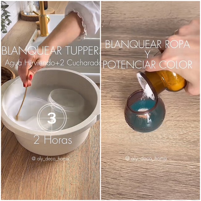 Especialmente, en uno de sus vídeos, vemos como habla de este producto de Mercadona: el percarbonato. Un blanqueador natural que nos ayuda a potenciar el blanco y la limpieza de todo tipo de productos. Desde calzados hasta objetos de cocina y elementos de la decoración como el sofá, la cama e incluso los tupper de comida.