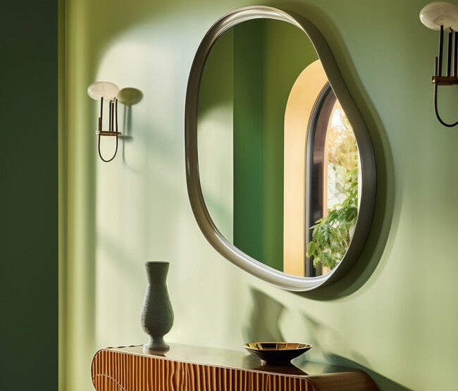 Este color, a mitad de camino entre el verde cremoso y el terroso, es ideal para dormitorios, salones, cocinas e incluso para el cuarto de baño, ayudándonos a conectar con la naturaleza mientras que también permite reflejar la luz, consiguiendo así espacios sea más amplios.