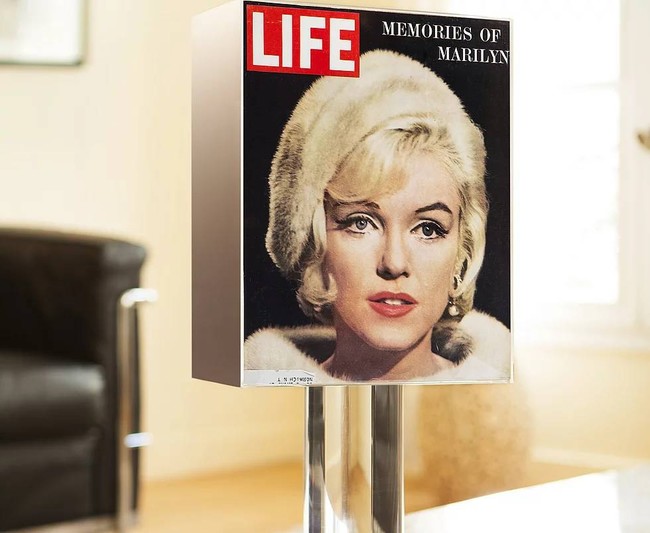 El color elegido es un guiño a la bebida preferida y el color de pelo de la gran actriz rubia de aquellos años: Marilyn Monroe. Su primera lámpara nace con Marilyn más tarde llegarían las demás obras de diseño decorativo con artistas como Paul Newman, Elisabeth Taylor, Jane Birkin, James Dim ... todas en su web y, aunque fueron muy importantes internacionalmente, Eric Salone eligió la fecha de presentación de su primera gama el día 5 de agosto, fecha en la que la diosa rubia abandonó este mundo (1962), por lo que deducimos que es un apasionado seguidor de la famosa actriz. Los precios oscilan según la revista, noticia y fotografía, entre 290 euros y 450 euros.